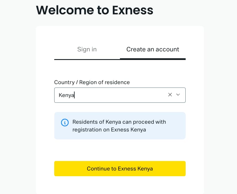 From the Exness homepage, we clicked on the New Account tab where we were directed to register an account.